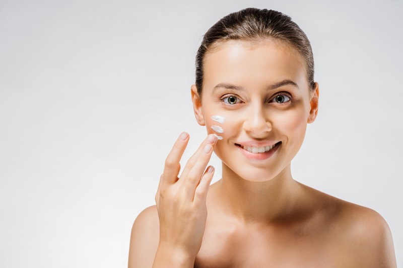 Sử dụng các sản phẩm kem dưỡng trắng da mặt cũng là trợ thủ hỗ trợ làm mờ các vết thâm sau mụn.